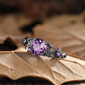 Round amethyst couple ring set tungsten ring his and hers wedding band promise ring