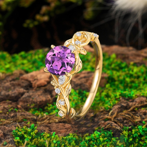 Round Amethyst Gold Vine Couple Rings Gold His & Her Matching Rings Men's Tungsten Couple Rings - anerjuly